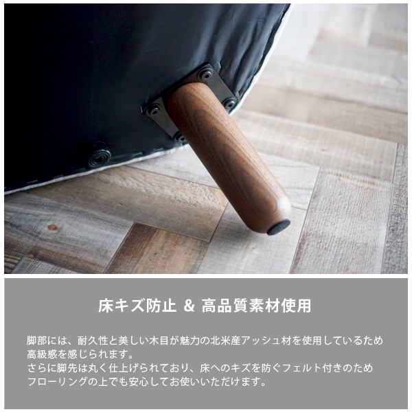 脚部には、耐久性と美しい木目が魅力の北米産アッシュ材を使用しているため高級感を感じられます。