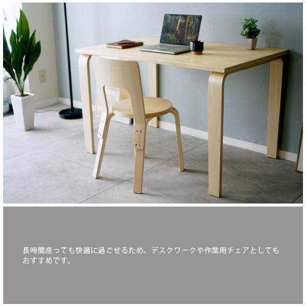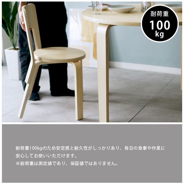 耐荷重は約100kg。食事や作業時も安定して使えるダイニングチェア/ワークチェアです。