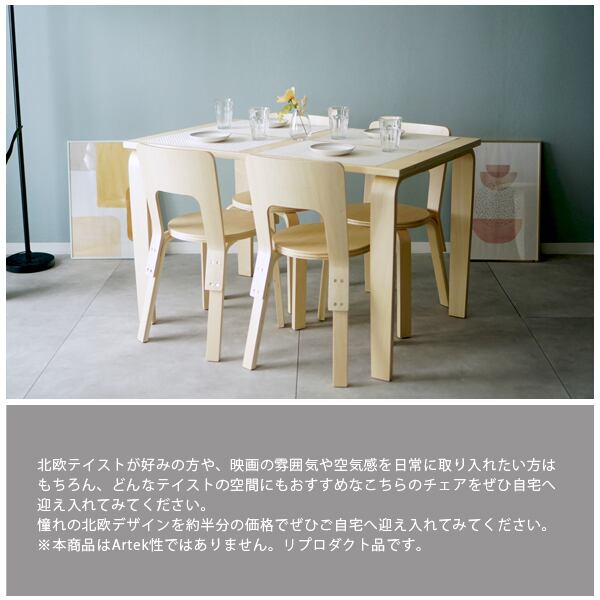 Aalto Chair 66 リプロダクトは、フィンランド・ヘルシンキを舞台にした映画で描かれるような、静かで温かなカフェシーンにも似合う北欧デザインの木製チェア。素朴で清潔感のある佇まいを、手に届きやすい価格で再現しました。