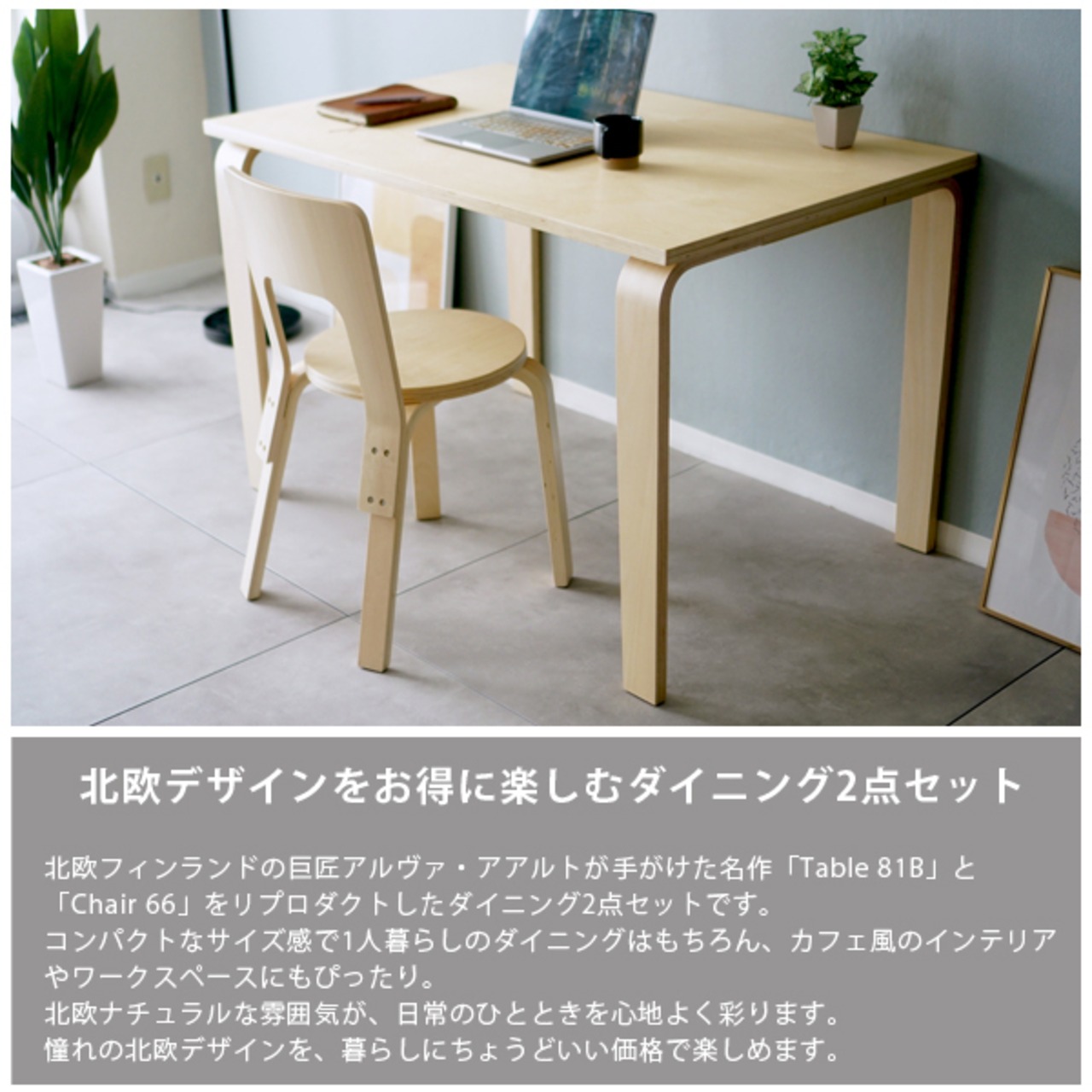北欧フィンランドの建築家 アルヴァ・アアルトが手がけた名作「Table 81B」「Chair 66」をベースにしたリプロダクト。