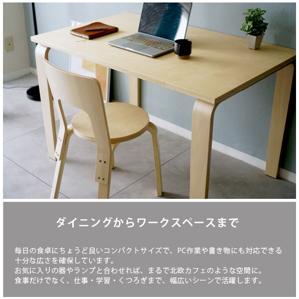 北欧風ダイニング2点セット Aalto Table 81B + Chair 66 幅120cm 木製テーブル&チェア おしゃれ カフェ風