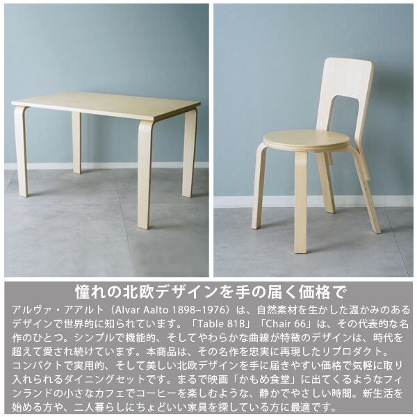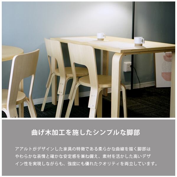 北欧フィンランドの建築家アルヴァ・アアルトがデザインした名作「Table 81B」と「Chair 66」を忠実に再現したリプロダクト。