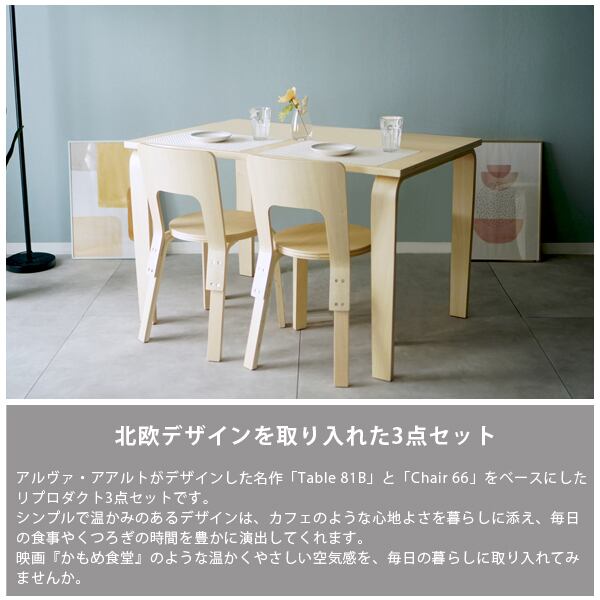 ※こちらは「ダイニング3点セット(テーブル81B+チェア66)」の販売ページです。