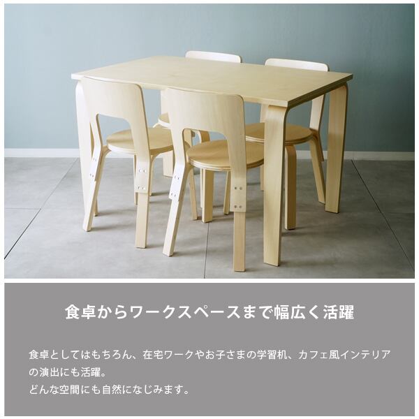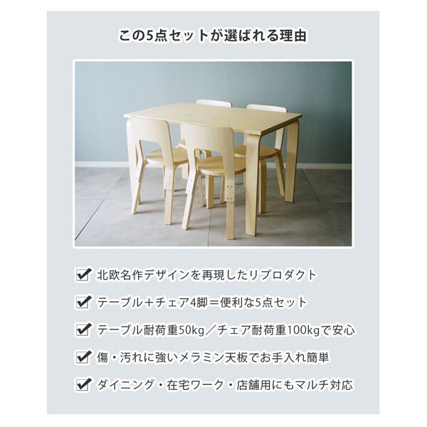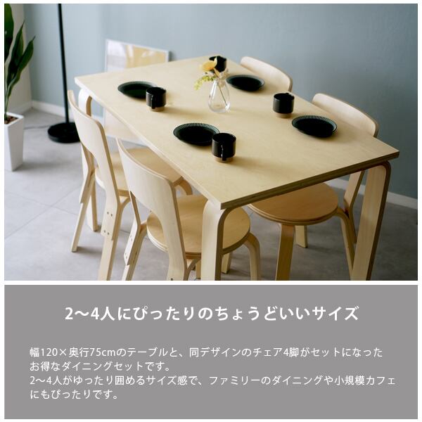 北欧風ダイニング5点セット Aalto Table 81B + Chair 66×4 幅120cm 木製テーブル&チェア おしゃれ カフェ風
