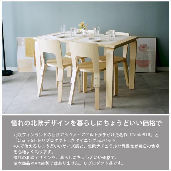 アルヴァ・アアルトがデザインした名作「Table 81B」と「Chair 66」をベースにしたリプロダクト5点セットです。