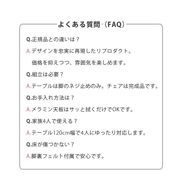幅120×奥行75cmのテーブルと、同デザインのチェア4脚がセットになったお得なダイニングセットです。