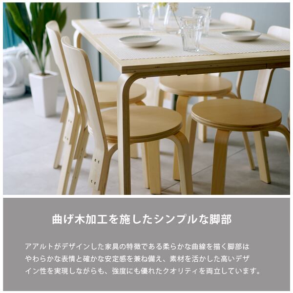 北欧フィンランドの巨匠アルヴァ・アアルトが手がけた名作「Table81B」と「Chair66」をリプロダクトしたダイニング5点セット。