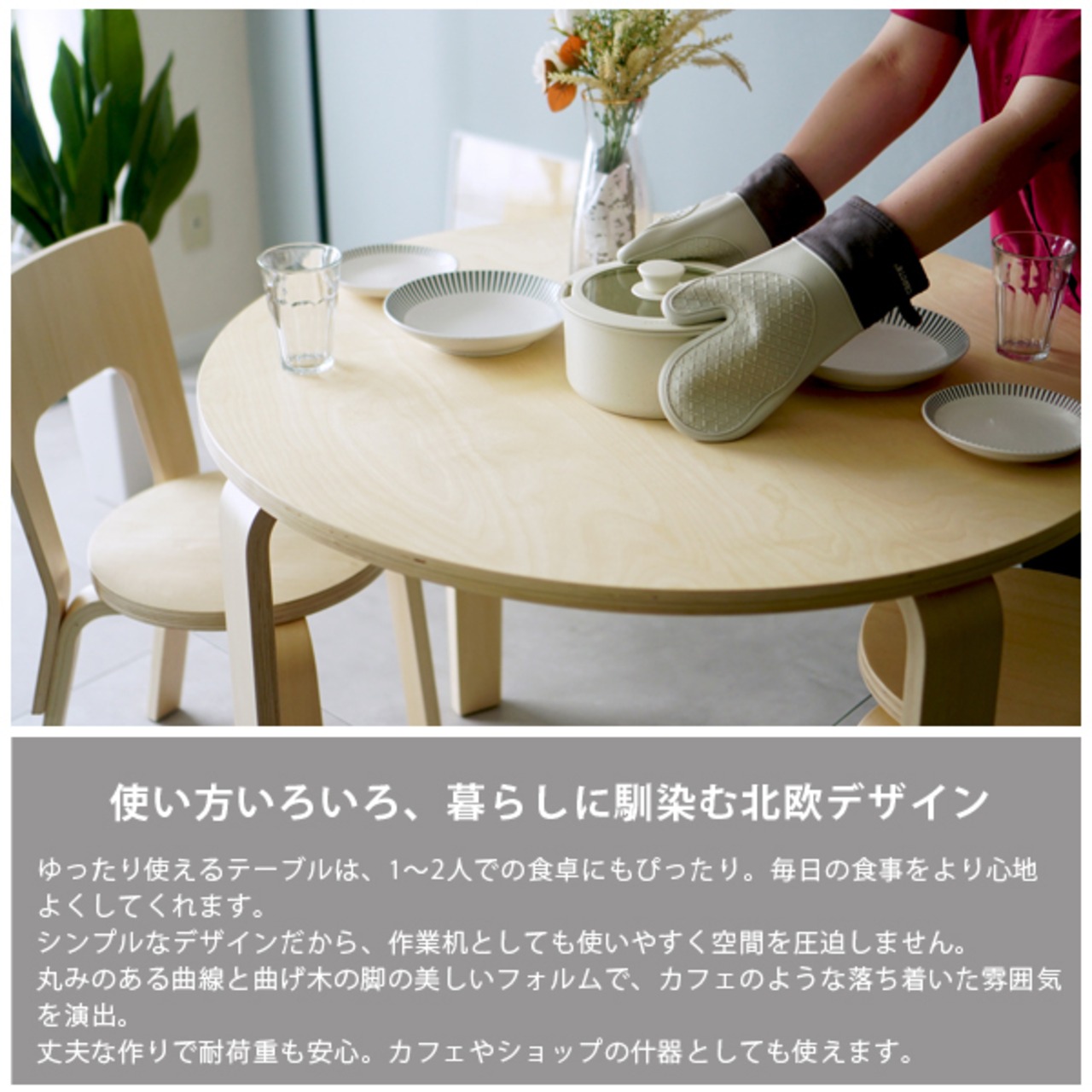 2~3人に最適な円卓サイズで、暮らしに自然と溶け込む北欧ナチュラルな空間を演出します。