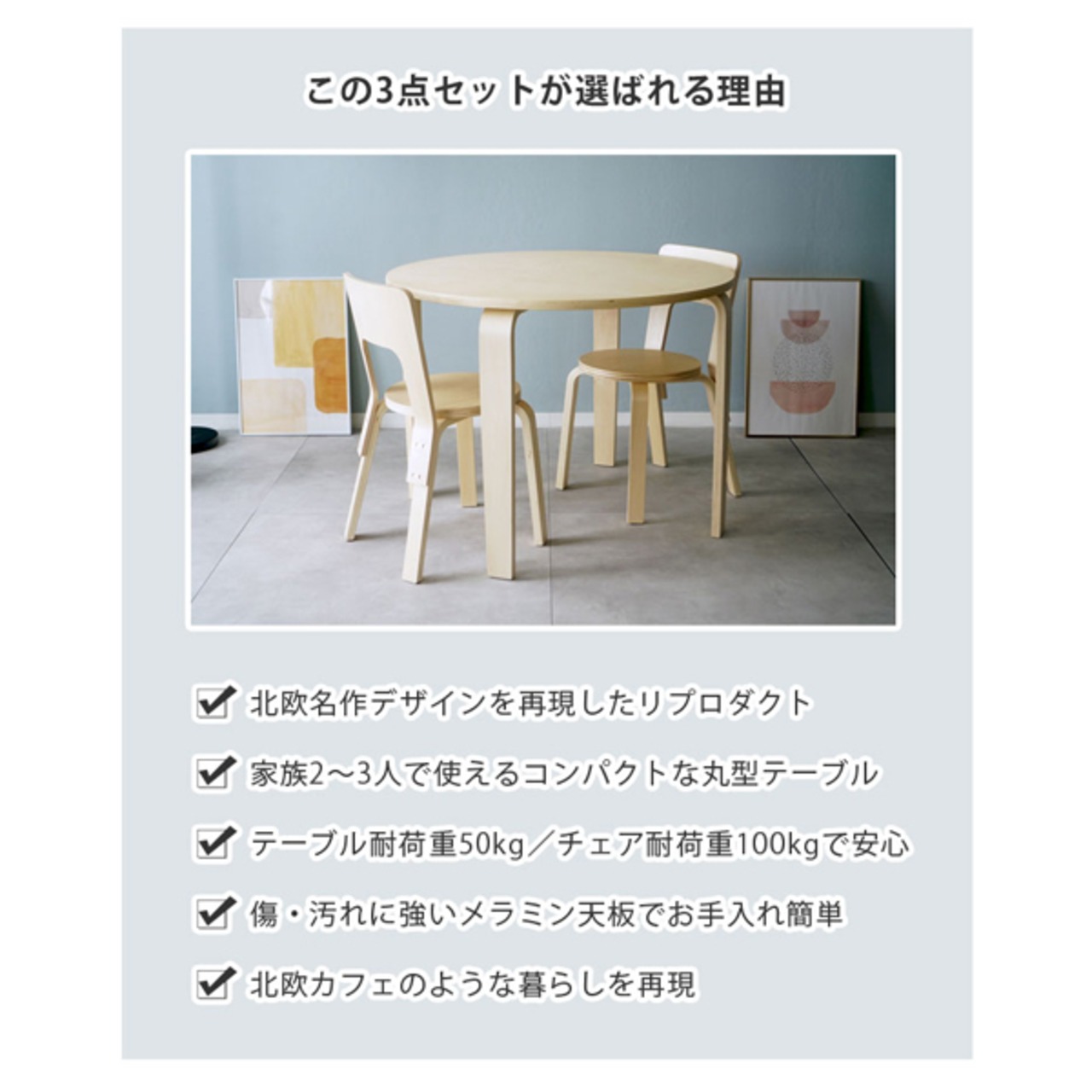 高価なArtek正規品に比べ、手に取りやすい価格で北欧ダイニングセットを楽しめます。