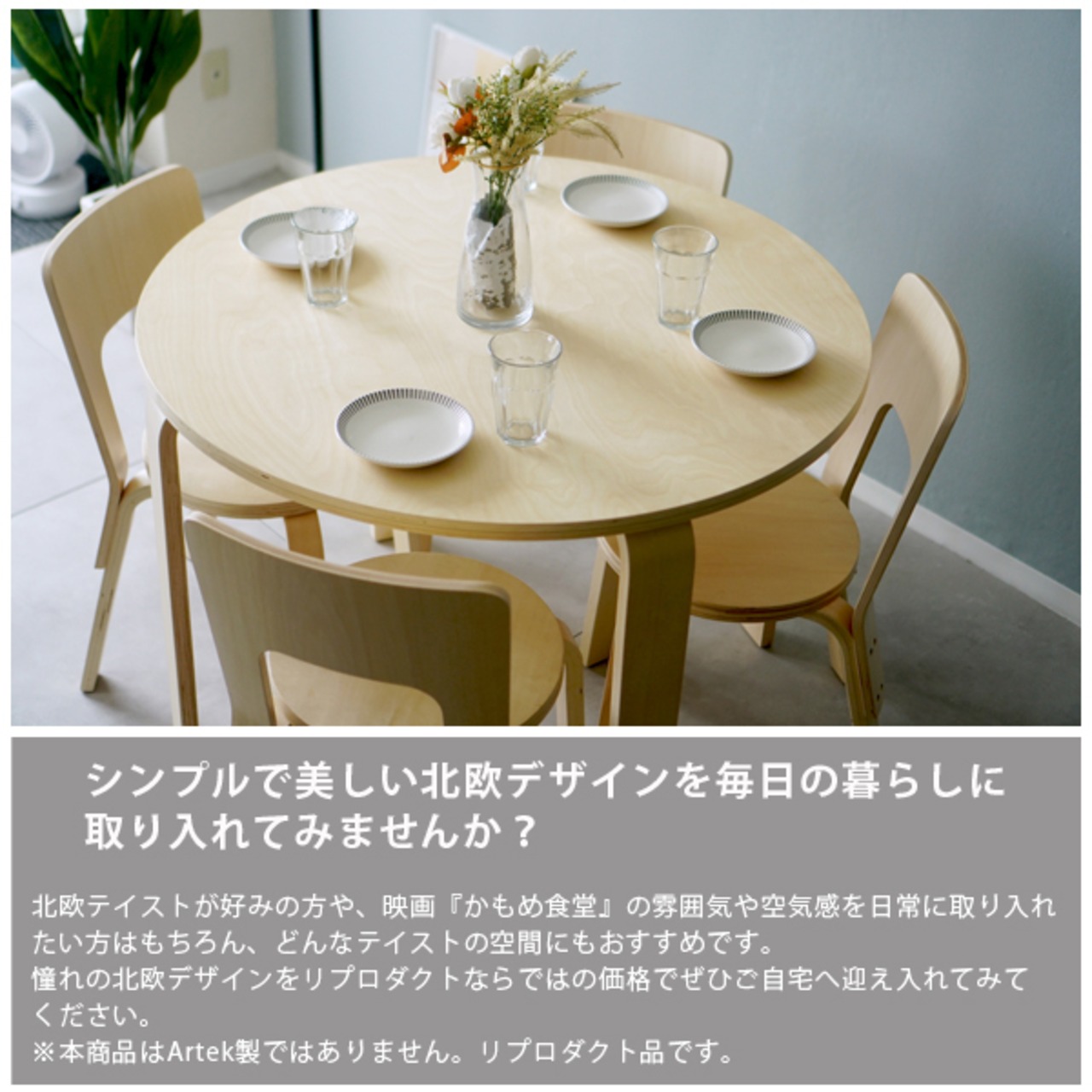 ※こちらの商品は、映画『かもめ食堂』に登場するような雰囲気の「TABLE 90A」と「CHAIR 66」をベースにしたリプロダクト品です。公式商品ではありません。