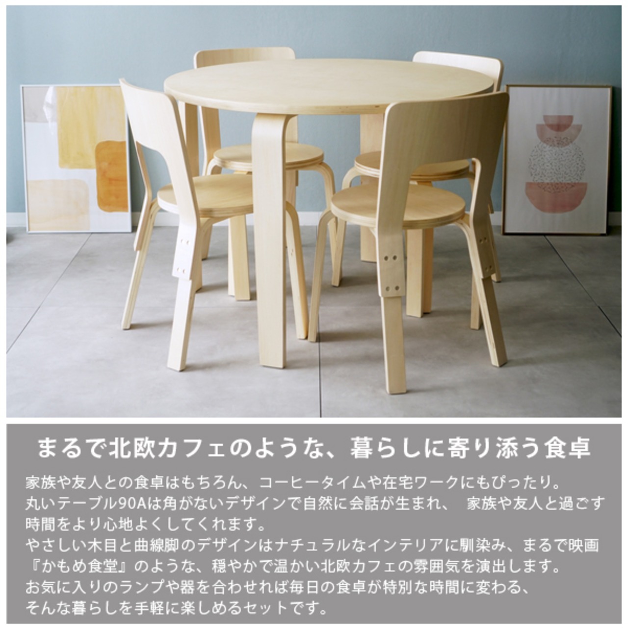 4人で使えるちょうどいいサイズ感と、北欧ナチュラルな雰囲気が毎日の食卓を心地よく彩ります。