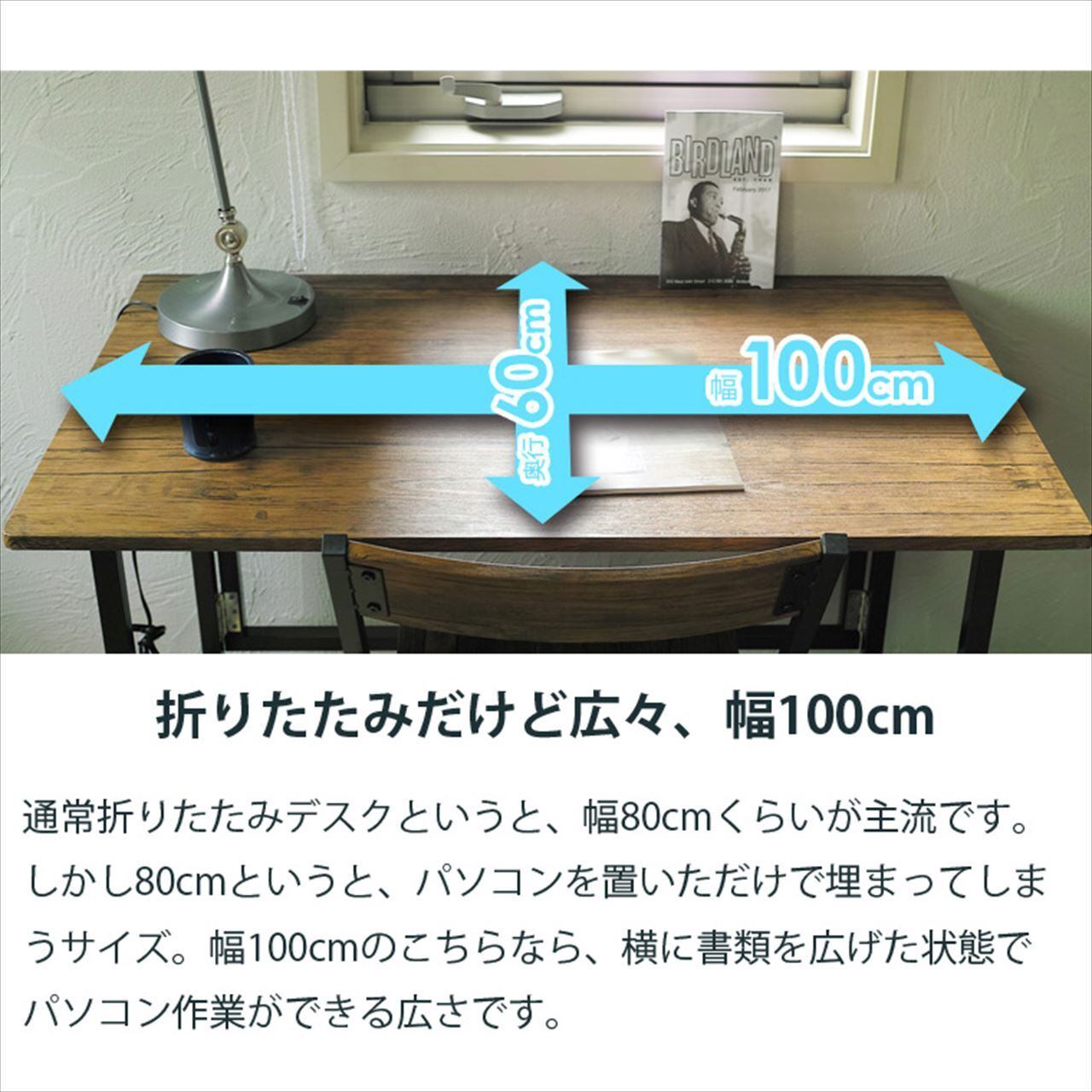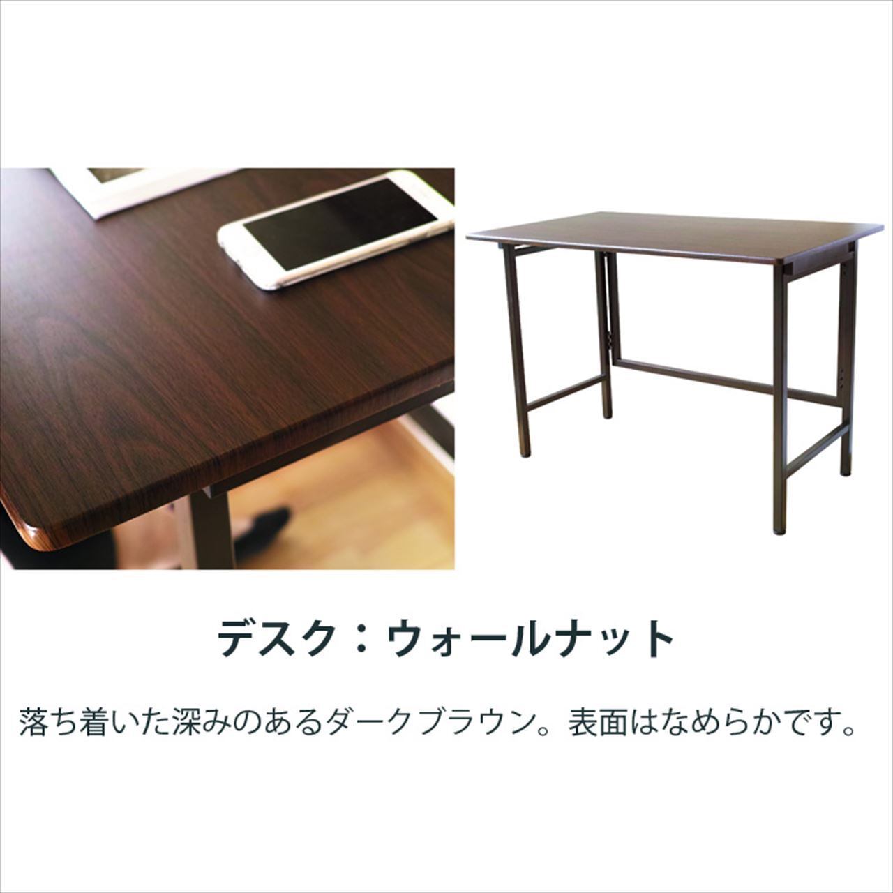 パソコンでの調べ物やミシン掛けなどするときに、ちょっとした作業机は欲しいけれど場所をとりたくないし.…という方に、この折りたたみデスクはぴったりです。パッと広げて作業に使え、用が済んだらサッとたたんで収納。必要なときだけ出せるので、お部屋を広く保てます。そして折りたたみには珍しく、幅100cmとワイドな天板としっかりとした鉄製のフレーム構造。作業机として安心して使用できる実用性を重視しました。