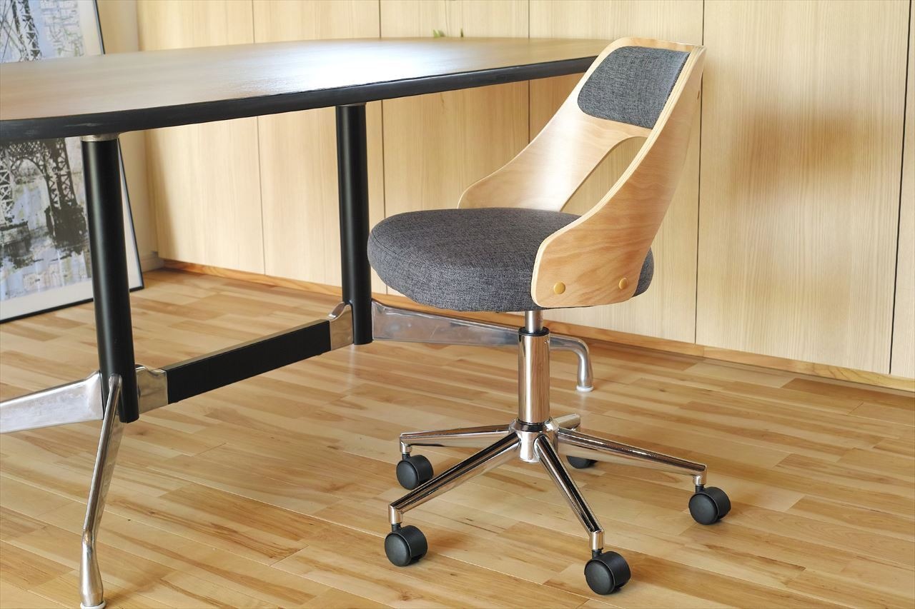 コンパクトながら天然木の質感でデスク周りに風格を創出するオフィスチェア。ワンランク上のワークスペースのコーディネートに、オススメです。