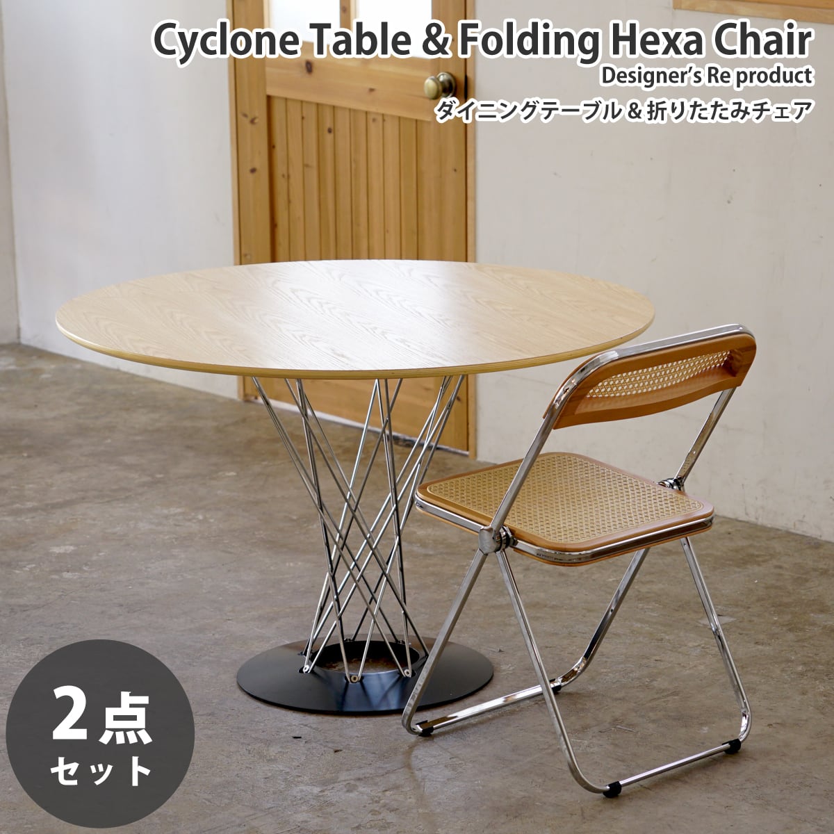 円形 ダイニングセット 2点 1人 イサムノグチ サイクロンテーブル 直径110cm (アッシュ) ダイニングテーブル ジャンカルロ・ピレッティ フォールディングヘキサチェア 折りたたみ椅子 デザイナーズ リプロダクト