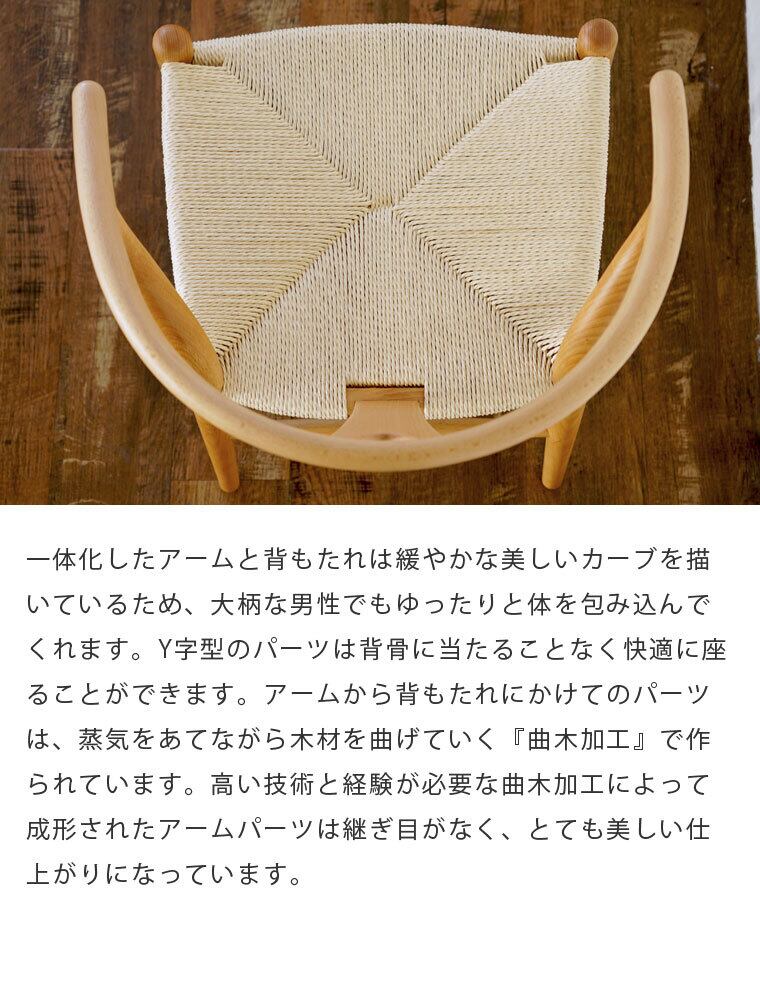 アームと背もたれを一体化した美しいカーブやY字型パーツ、ヨーロピアンビーチ(ドイツ産ブナ)材の木目、ペーパーコードの編み目など360度どこから見ても美しいダイニングチェアです。素材感や温かみのあるデザインは日本の住宅との相性は抜群です。洗練されたデザインのため高級感も感じられ、上品でおしゃれなダイニング空間を演出してくれます。