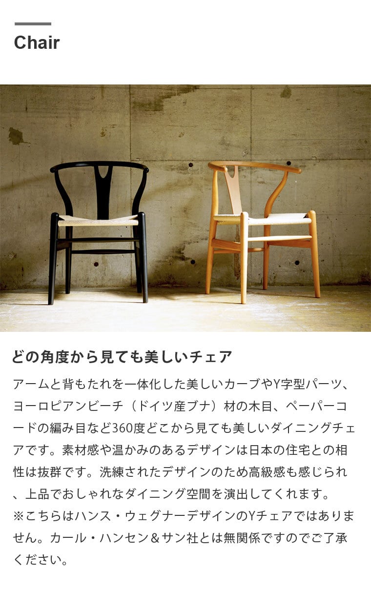 ※チェアはハンス・ウェグナーデザインのYチェアではありません。カール・ハンセン&サン社とは無関係ですのでご了承ください。