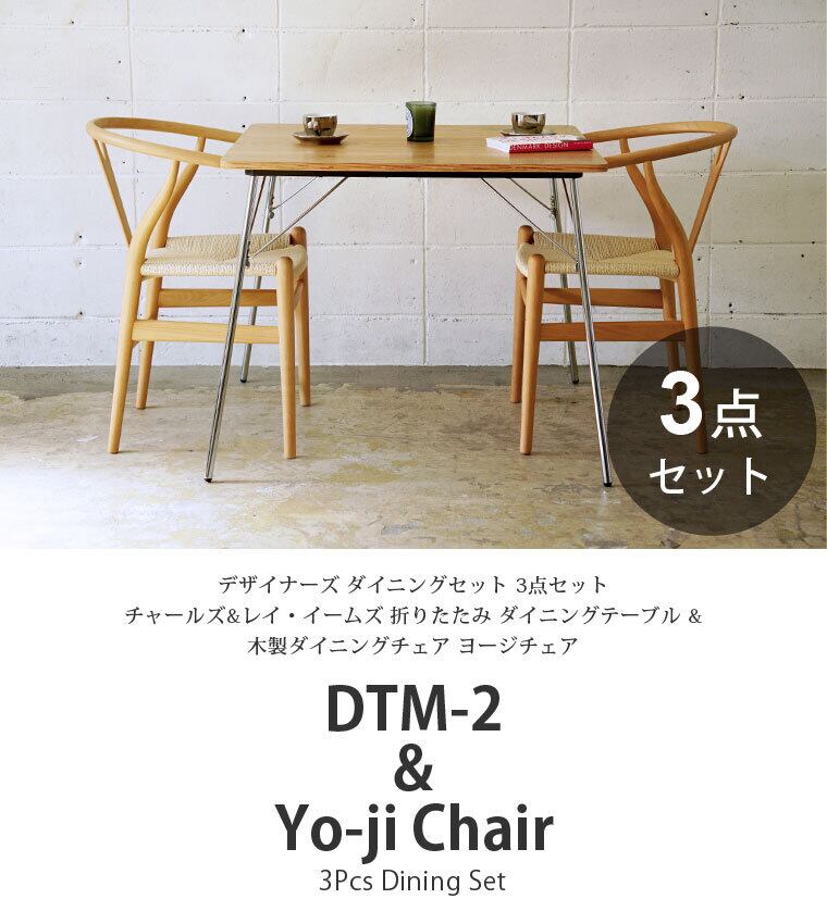 《お得な3点セット》イームズ 折りたたみテーブル DTM-2 & 木製 ダイニングチェア Yo-jiチェア デザイナーズ ダイニングセット リプロダクト