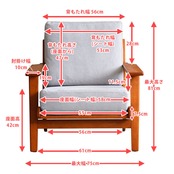 【肘掛け部分】 幅81cm x 奥行き72cm x 高さ29cm / 約10kg