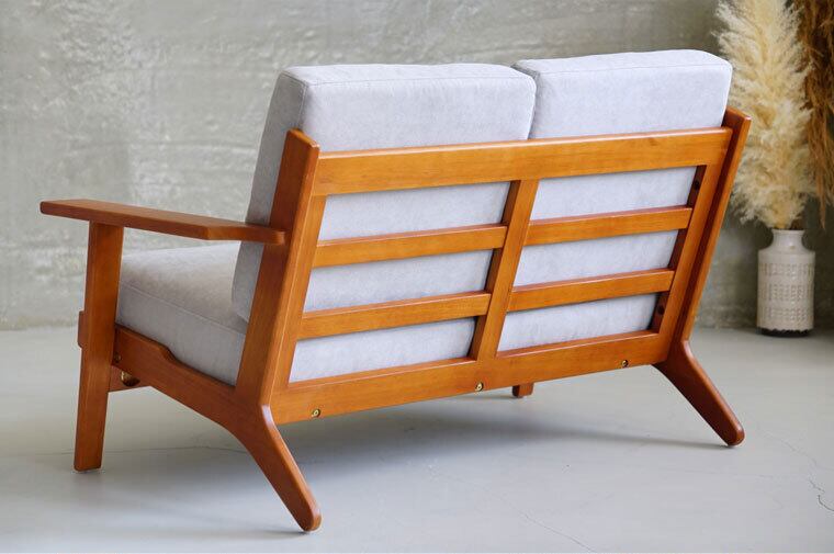 シンプルなデザインですが、細部までこだわったデザインで360度どこから見ても美しく、特に後方に滑らかに伸びた後脚はソファ全体の美しさを引き立てています。また、後脚には重心を後ろに掛け安定性を保つ効果があり、美しさと機能性を兼ね備えたウェグナーならではのデザインと言えます。