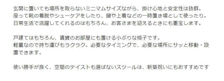 戸建てはもちろん、賃貸のお部屋にも置ける小ぶりな椅子です。