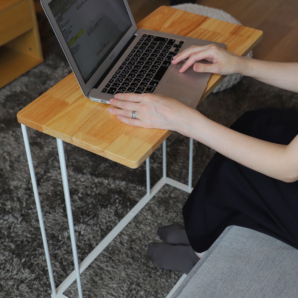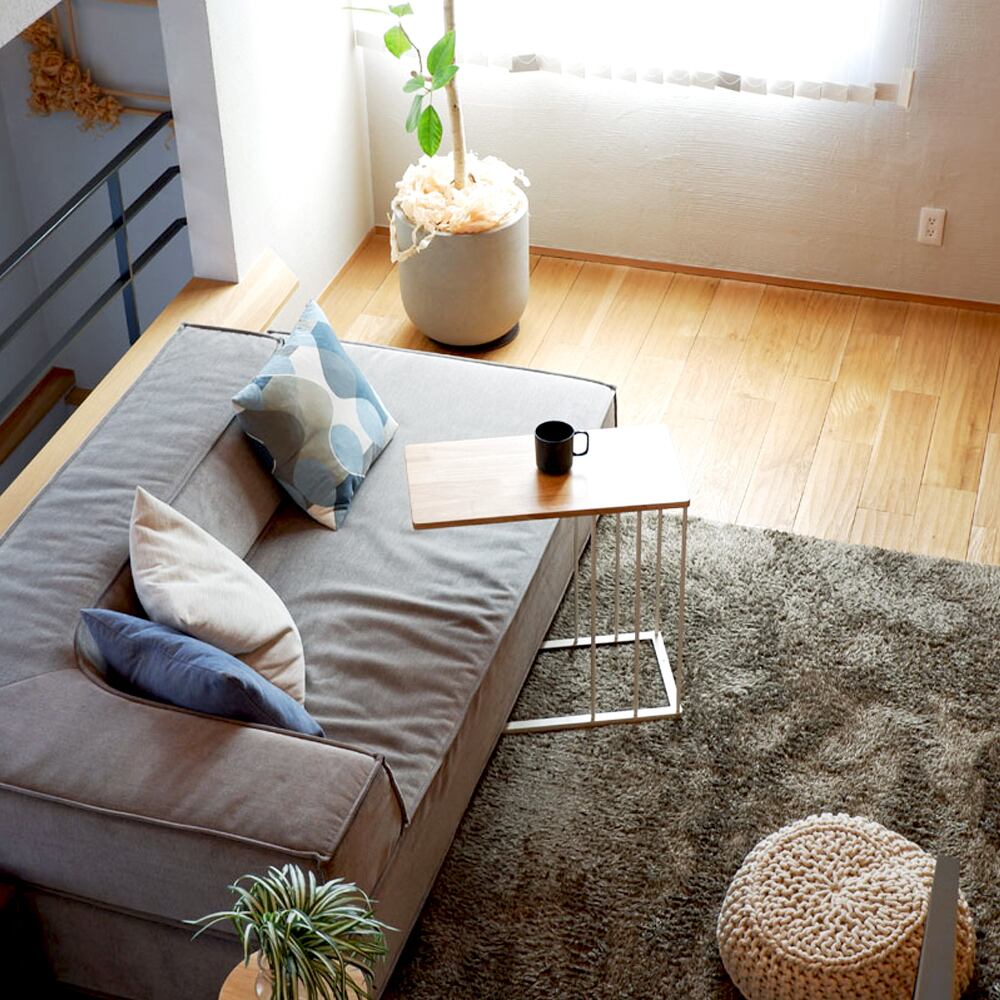 ソファやベッドに縦に差し込んで飲み物やスマホを置いておくサイドテーブルとして、横向きでPCテーブルとして、ソファやベッドサイドだけでなく壁際で観葉植物などのディスプレイラックとしてなど様々な使い方ができます。